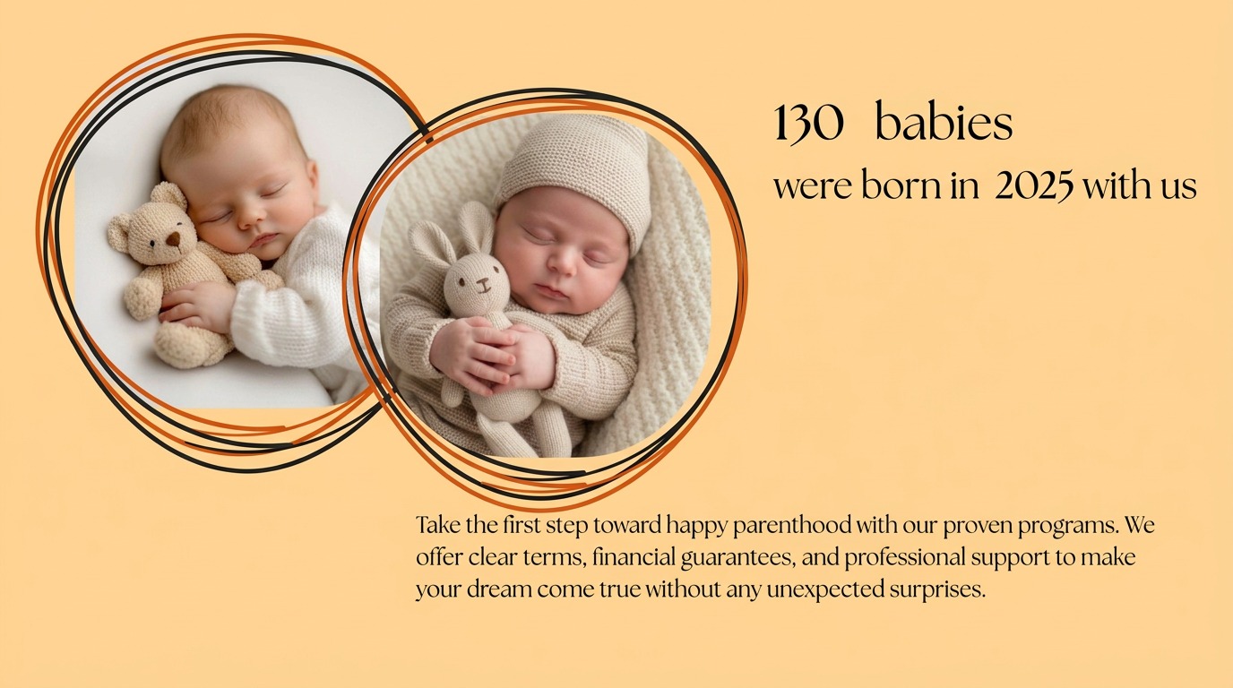 We work with everyone individually and take everyone’s problems to heart. You get a full range of services. The doctor’s talent, the work of service management and the skills of lawyers – everything works for results. You trust us to find the solution of your problems, and as a result, you embody the dream of a child in life.